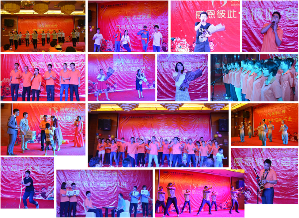2樓晚宴廳,現(xiàn)場布置、演員化妝、主持彩排、節(jié)目復(fù)習(xí)如火如荼地進行。終于,16點30分,帥哥美女齊聚一堂,現(xiàn)場音樂響起,燈光閃爍,普賽達13周年慶晚會準(zhǔn)時燃起。精彩的視頻短片,記錄了2015的輝煌,任總致辭,表達了對家人,員工的感謝。歡快的生日歌縈繞耳旁,任總及各部門長一起切蛋糕,開香檳,舉杯慶祝普賽達13周歲生日。