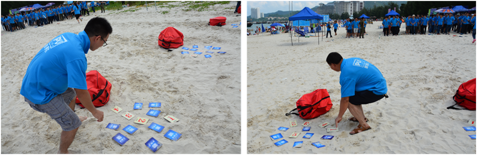 迎著早晨明媚的陽光,普賽達全員開啟了為期半天的團隊?wèi)敉馔卣够顒?。藍天白云下,踏著整齊的步伐,邁向海邊沙灘。在和教練一陣談天說地過后,大家開始報數(shù),數(shù)字相同則為一組,6支隊伍由此誕生。每隊選出隊長,各隊隊名和口號,一個比一個威武霸氣,頓時火藥味十足,團隊之間難分伯仲。