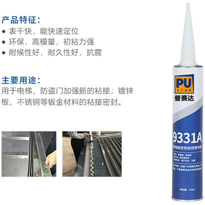 用于電梯、防盜門加強(qiáng)筋的粘接;鍍鋅板、不銹鋼等鈑金材料的粘接密封。