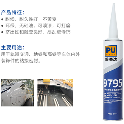 用于軌道交通、地鐵和高鐵等車體內(nèi)外裝飾件的粘接密封。